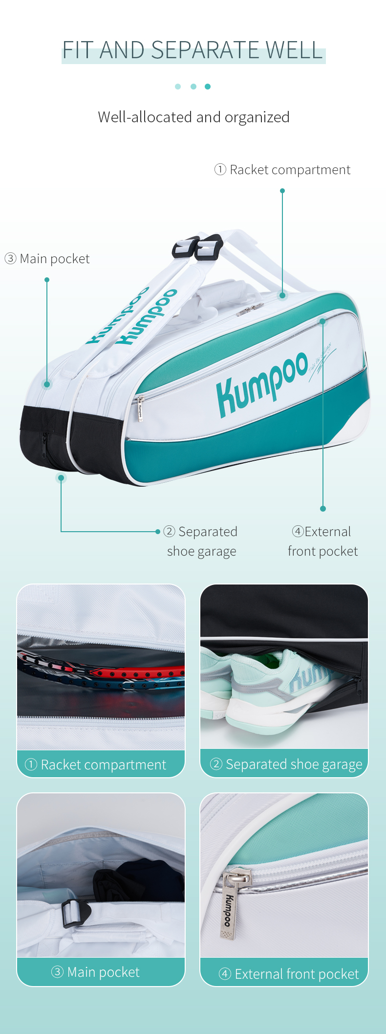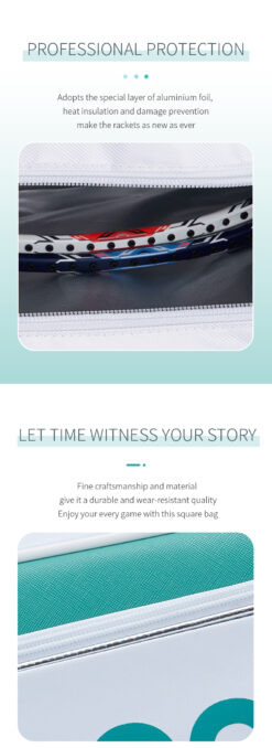 A compact badminton kitbag with dual compartments for organized storage. Includes a thermal-lined outer pouch for temperature-sensitive items. Designed for regular training and match use.