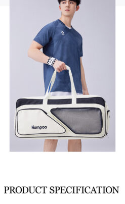 Material: Synthetic Leather. Lining: Fabric. Color: white blue ,white black. Size: 73 x 20 x 32 cm. Compartments: Separate Racket Compartment, Shoe Section, Multifunctional Front Pocket with Thermal Insulation. Design: Square, Functional, and Spacious.