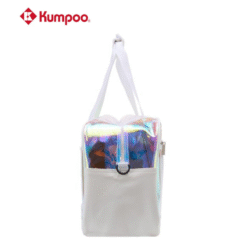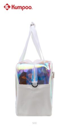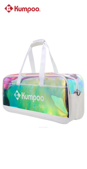 Colorful multi-purpose sports bag made from PU leather with polyester lining. Features a single compartment, built-in shoes pouch, and a wet clothes pouch for convenient storage.