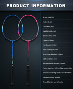 This beginner-friendly all-round racket is crafted from high modulus carbon fiber for both strength and lightness. With an even balance and sleek blue finish, it offers great control and versatility—ideal for players developing their skills.