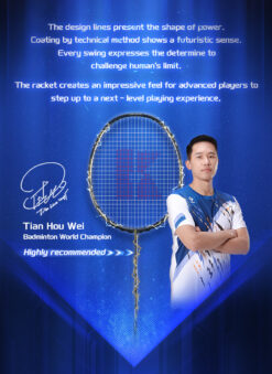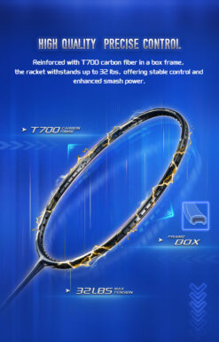 This gift box set is ideal for intermediate players, featuring an offensive racket made with T700 carbon fiber frame and a 24T shaft. Weighing 82g (4U) with a 295mm even balance and G5 grip,